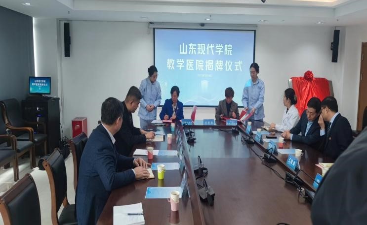 座谈会上,双方表示希望本次合作能够发挥学校与医院的学科优势,各取所长,优势互补,通过共同努力,完成合作共赢,并在热烈的掌声中共同完成了山东现代学院教学医院签约和揭牌仪式。