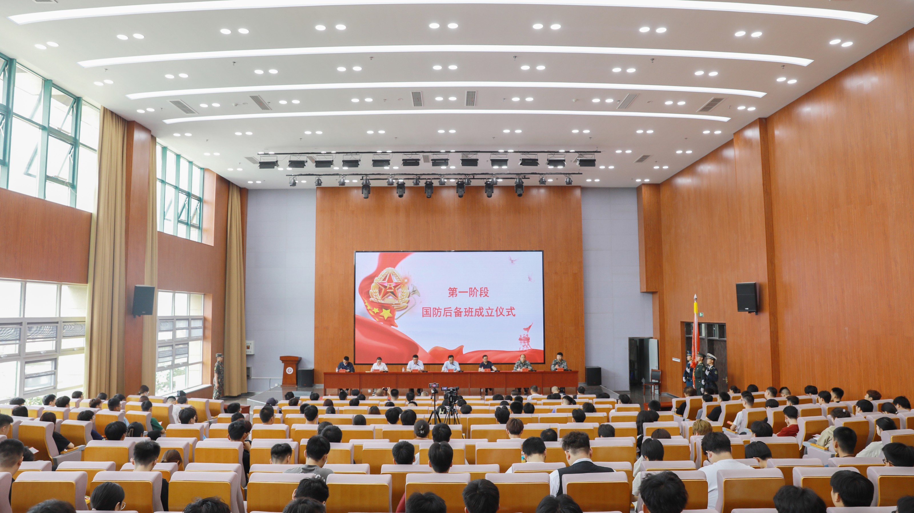 高新区发展保障部副部长张源为山东现代学院国防后备班授旗,并发表讲话。他以国防历史为切入点给同学们上了一堂精彩生动的国防教育课,让同学们对国防概念有了进一步认知,增强了家国责任和爱国情感,同时他鼓励学生们积极投身军旅生活,在锻炼中磨炼意识、在奉献中实现价值。