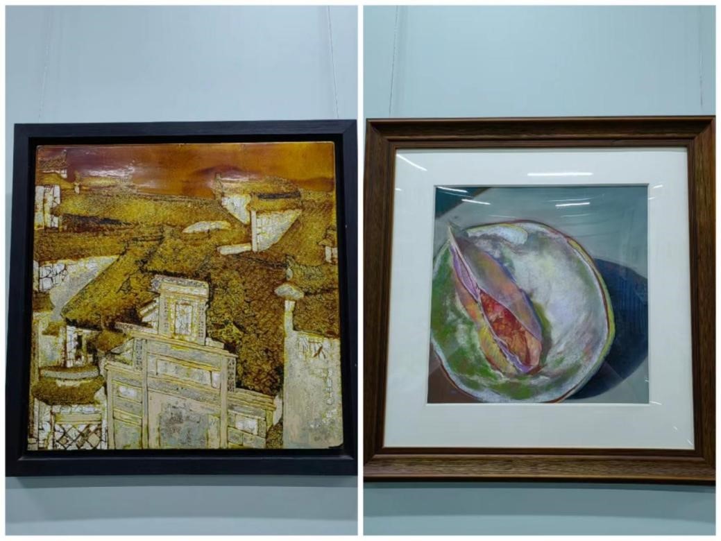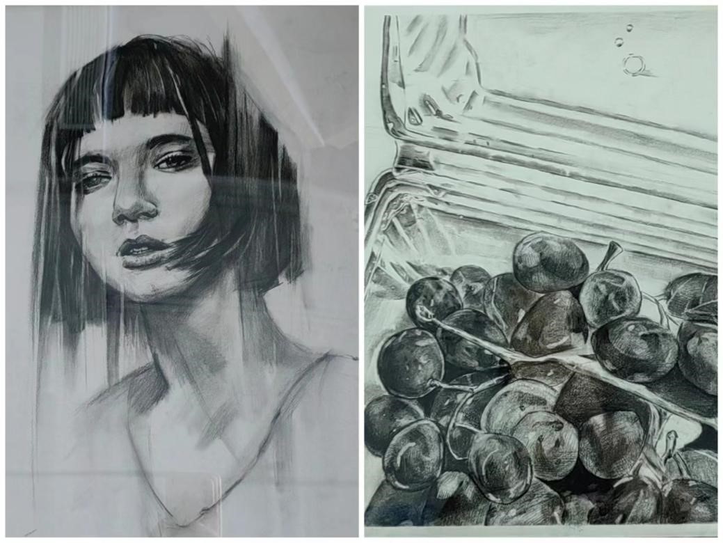 教学成果作品形式多样,书法、素描、油画、创意手工制品、石头画、剪纸、泥塑等,每个作品都栩栩如生,惟妙惟肖。