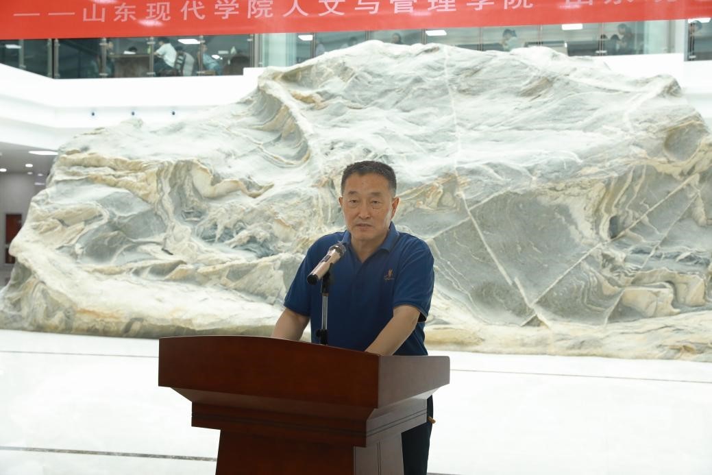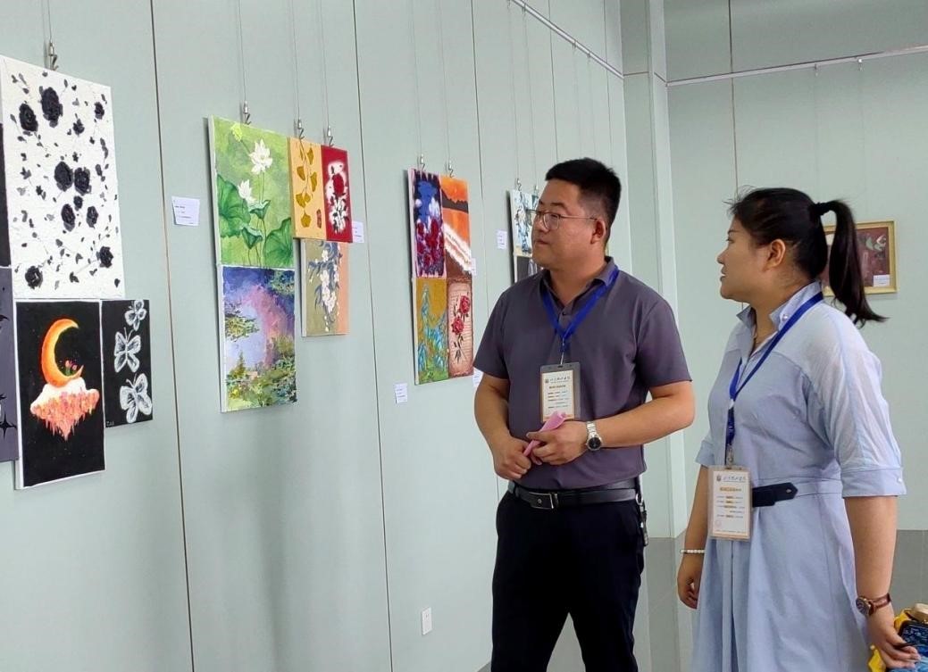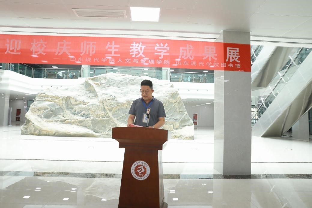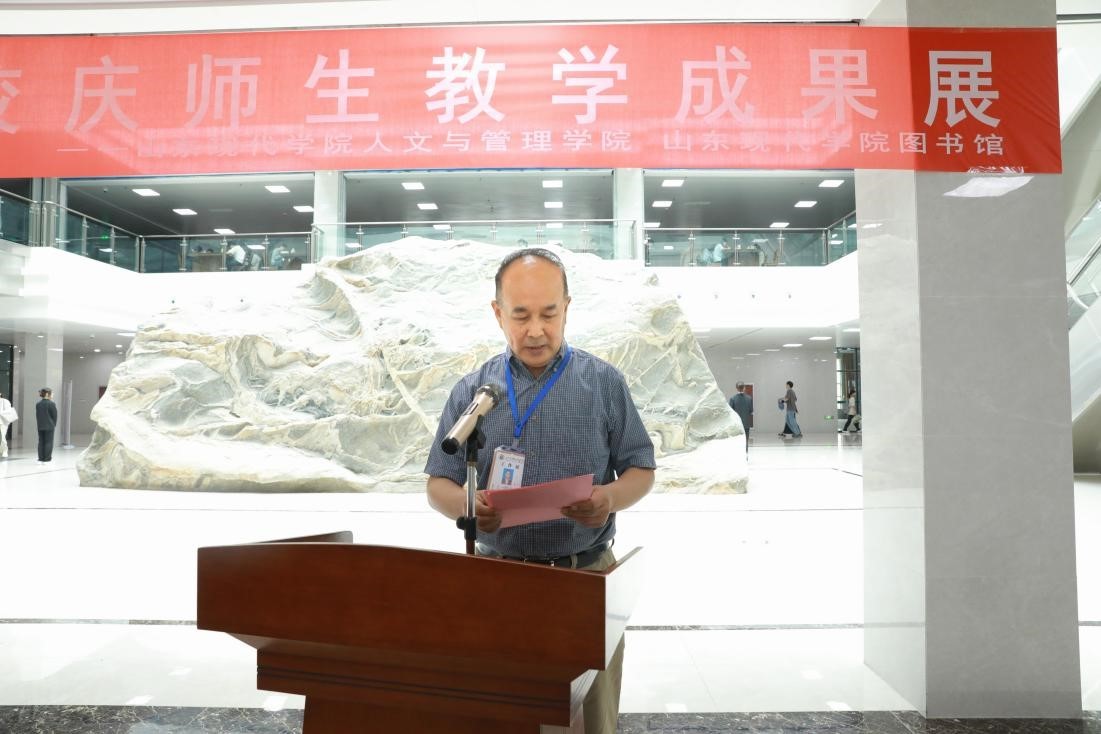 值此校庆30周年来临之际,为进一步丰富校园文化生活,营造浓郁的艺术创意氛围,展现师生精神风采,促进学校美育发展。由人文与管理学院主办,图书馆承办的“迎校庆师生教学成果展”于6月19日在图书馆一楼大厅举行开幕式,常务院长帅相志教授、院长助理房昌盛、有关部门负责人以及部分师生参加了开幕式,图书馆馆长徐兴余主持会议。