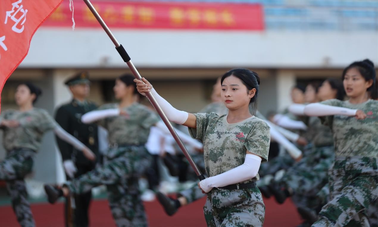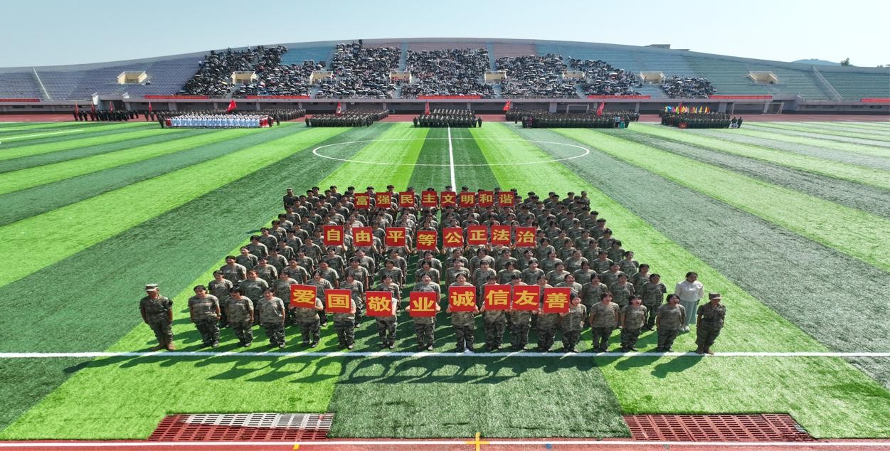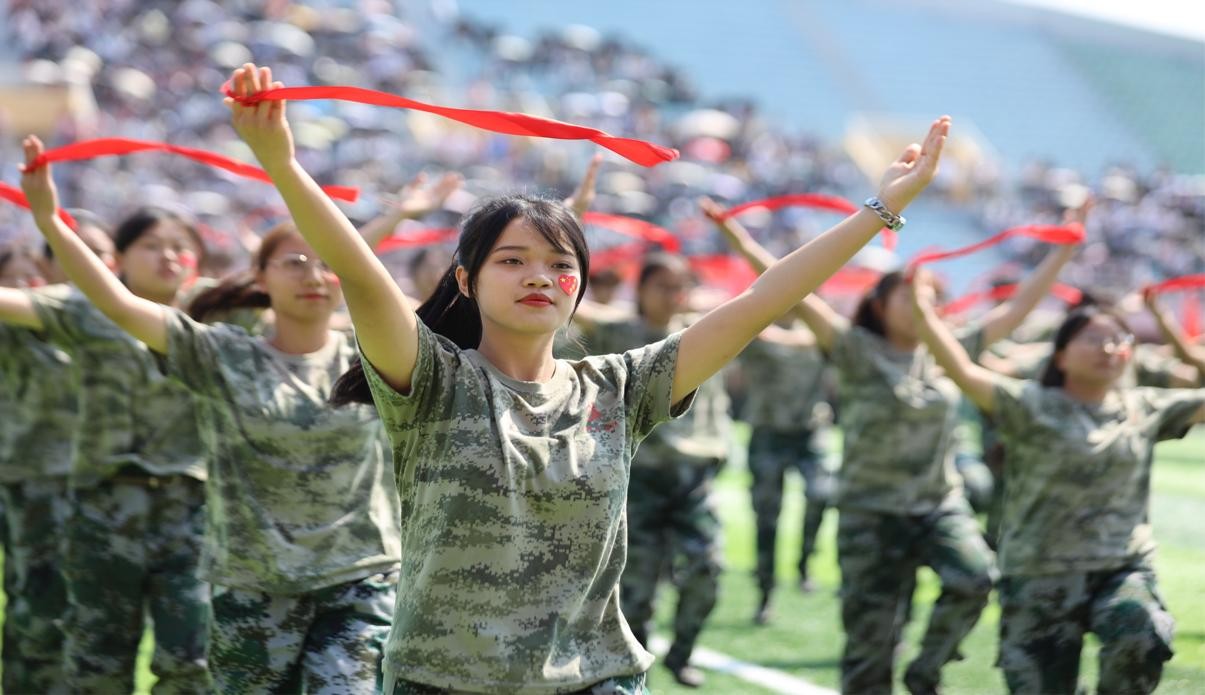 2023级各新生方队身姿挺拔、斗志昂扬,迈着整齐统一的步伐坚定地向主席台走来,接受领导们的检阅,展示着21天以来的军事训练成果和现代学子朝气蓬勃的精神面貌。