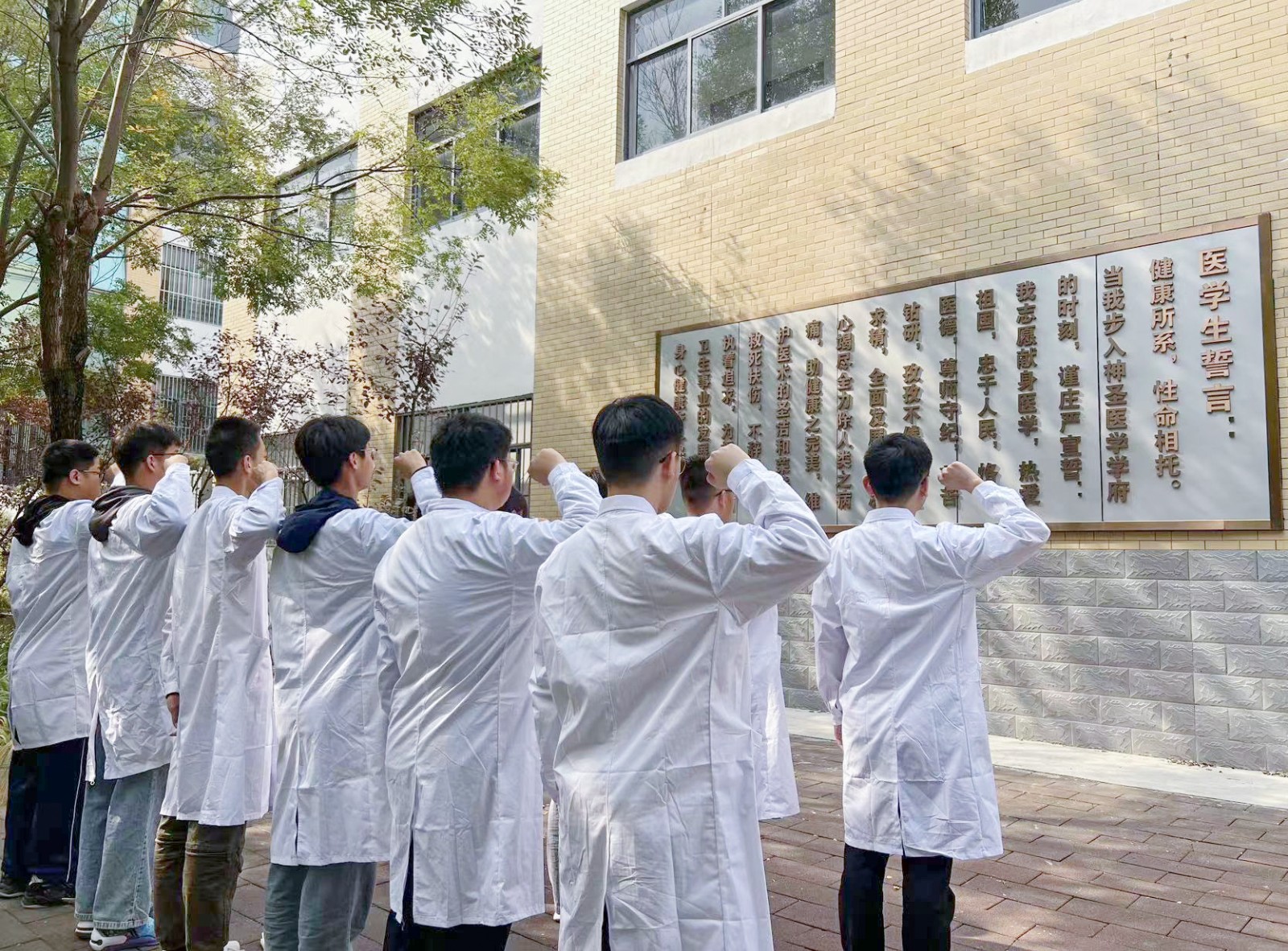 奋进医学路,逐梦向未来。为增强医学生职业认同,培育职业精神,提升职业素养,10月18日上午,我校医学院在诚信楼前举行了医学生宣誓仪式。