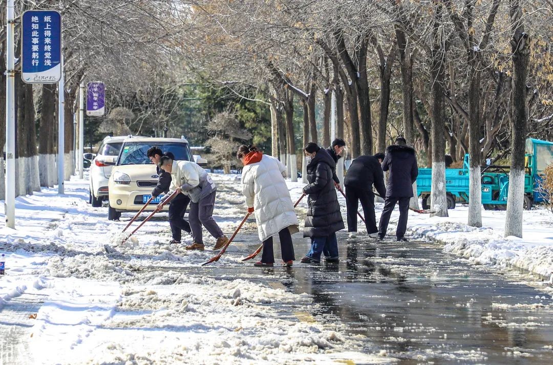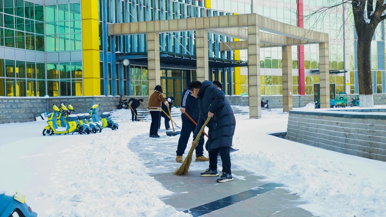 经过了几个小时的努力,校园主干道的积雪被清理干净,校园内的积雪和冰层逐渐被清除,保障了道路的安全畅通,呈现出干净整洁的面貌,为师生的出行提供了实际的便利。