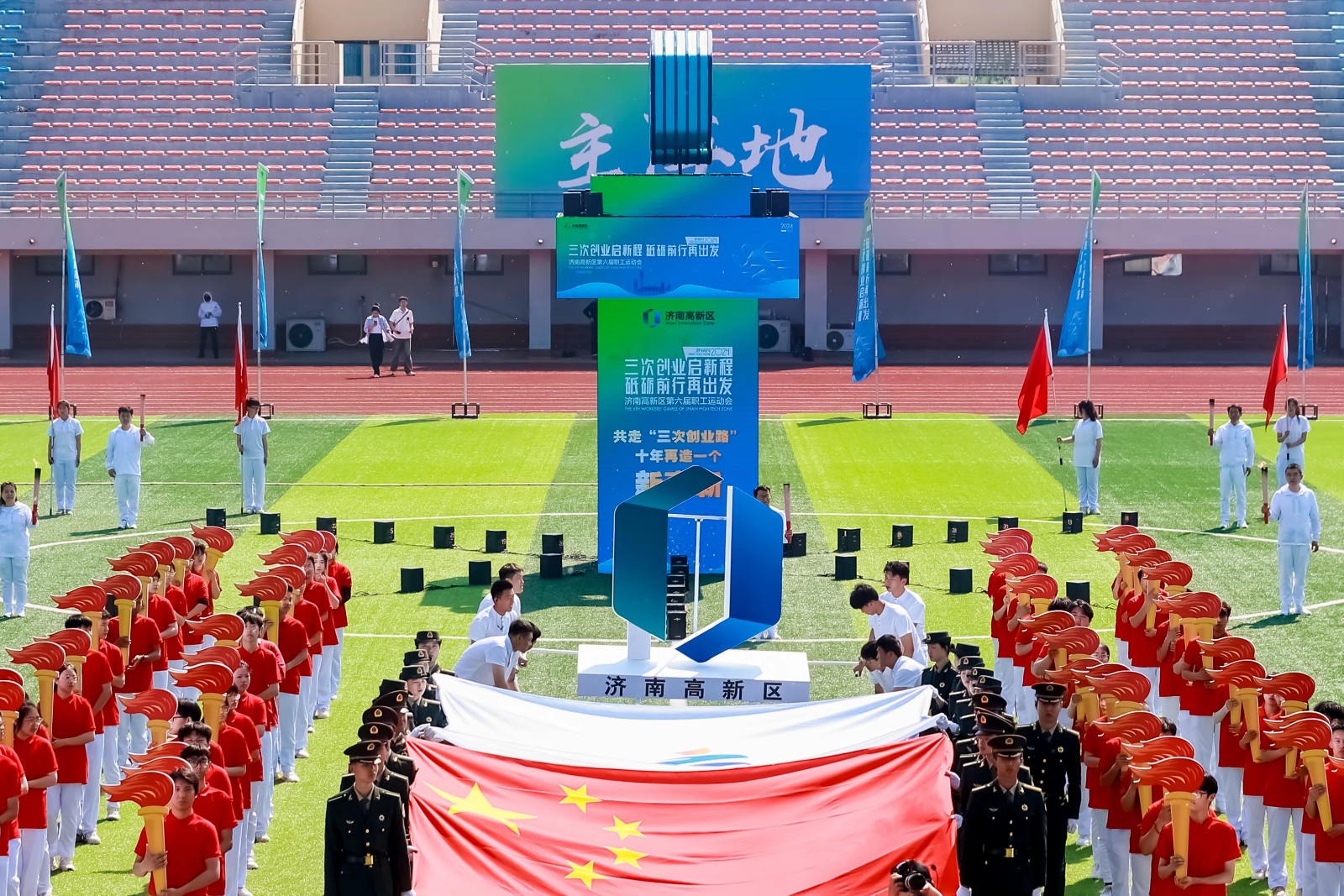 4月27日,济南高新区第六届职工运动会在我校“天行健”体育场举行,党工委副书记、管委会常务副主任任广锋,济南市总工会党组副书记、副主席申世平,高新区党工委管委会班子成员、管委会主任助理,各部门、园区、街道、派驻机构、企事业单位主要负责同志出席开幕式。我校董事长兼校长刘春静教授应邀出席。济南高新区党工委委员、党群工作部部长余兵主持开幕式。