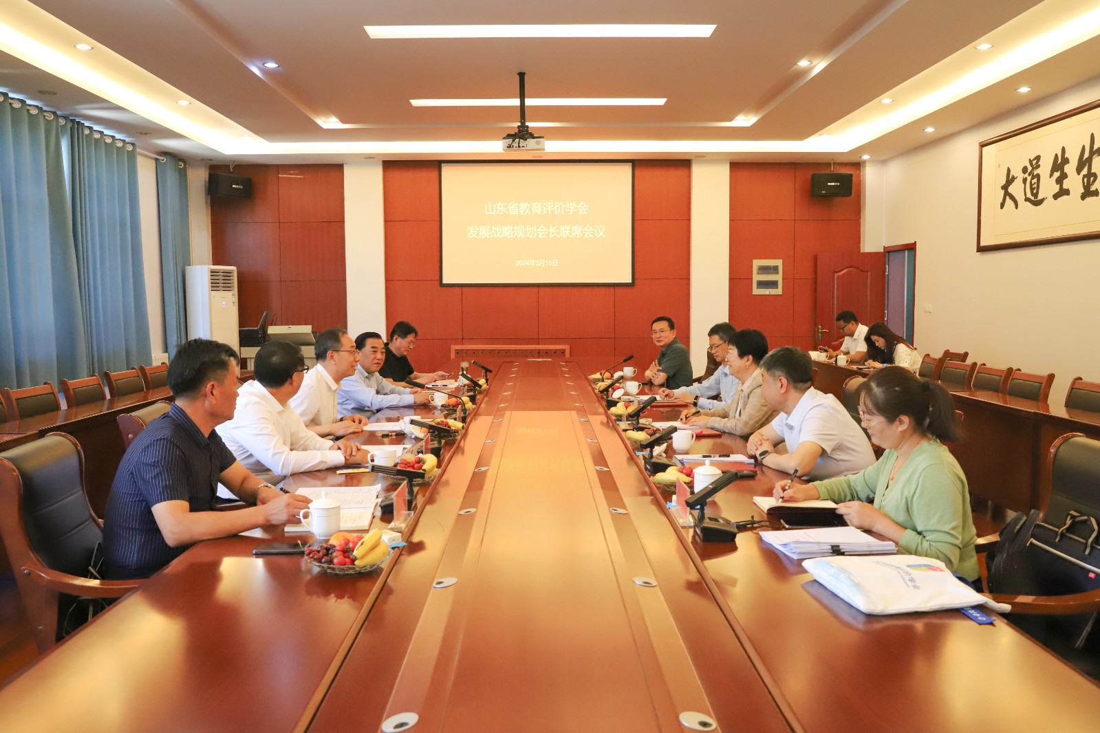5月15日,山东省教育评价学会战略规划会长联席会议在我校召开。山东省教育评价学会会长、山东师范大学党委书记冯继康,学会监事长、山东交通学院党委书记王焕斌,常务副会长兼秘书长、山东师范大学副校长张茂聪,副会长、山东出版传媒股份有限公司副总经理杨文军,副会长、山东特殊教育职业学院校长李心沁,副会长、山东师大基础教育集团总校长、山东师范大学附属中学校长苗禾鸣,副会长、山东现代学院董事长兼校长刘春静,副会长、山东商业职业技术学院副院长王家敏等出席会议。会议由山东省教育评价学会会长冯继康主持。