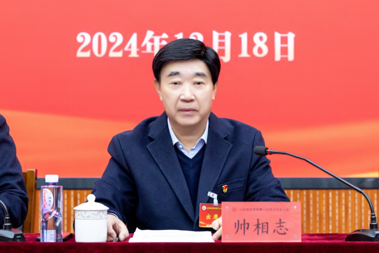 党委副书记、副校长帅相志代表学校祝贺第八次学代会的召开,并向同学们提出了三点希望:一是强化理论武装,树立远大理想,做信念坚定、政治过硬的新时代好青年;二是勇担时代使命,矢志攻坚克难,做锐意进取、敢为人先的新时代好青年;三是练就过硬本领,涵养吃苦精神,做百折不挠、豁达向上的新时代好青年,希望各位青年代表能从学校事业发展的大局出发,以饱满的政治热情和严谨负责的态度,明确光荣使命,认真履行职责,以本次会议为起点,进一步团结青年、引领青年、服务青年,塑造风清气正的组织文化,展现积极阳光的形象,凝聚全校青年学子力量,奋力书写中国式现代化的青春篇章。