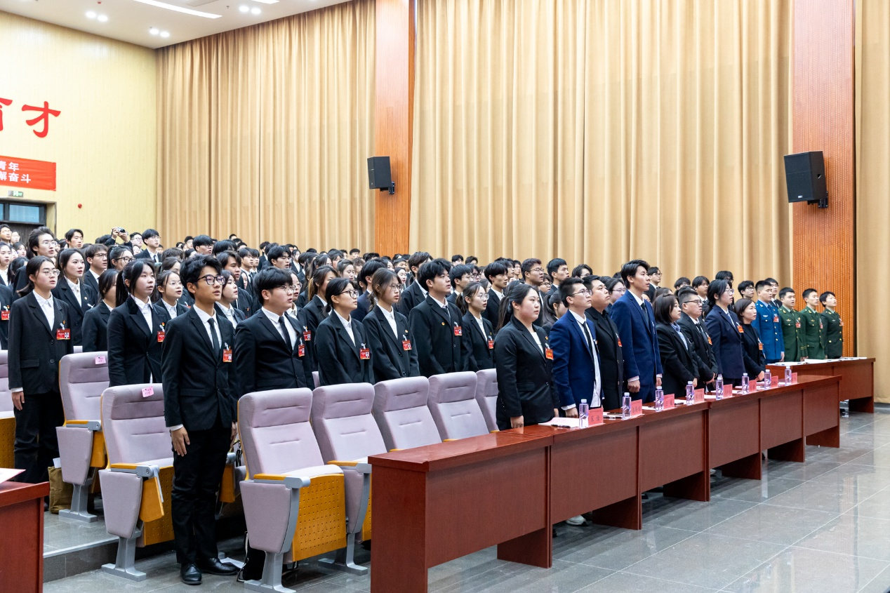 常务副校长姜同松致开幕词,他向全体代表提出三点要求:一是要坚定理想信念,筑牢精神之基,做志存高远、信念坚定的新时代好青年;二是要锤炼品德修为,引领文明风尚,做品德高尚、向上向善的新时代好青年;三是要涵养家国情怀,激扬青春担当,做心怀天下、勇挑重担的新时代好青年。希望同学们要秉持昂扬的奋斗精神和严谨细致的做事风格,全力追求卓越,努力成为德才兼修的现代青年。