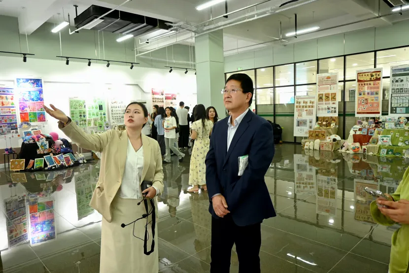 近期,2025届文创商学院毕业生作品展成功举办。5月12日,学校在图书馆现代大讲堂举办文创商学院毕业生作品展开幕式,并在3个展厅集中展示了绘画、视觉传达设计等专业的116件毕业设计作品。执行校长朱松涛,党委副书记、副校长帅相志,常务副校长姜同松等校领导出席活动。