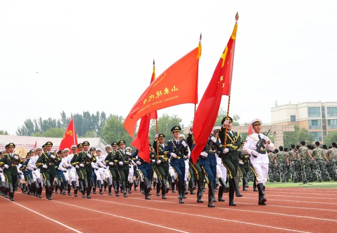 步伐铿锵有力、队列整齐划一,口号响亮激昂。在护旗方队的引领下,2025级新生方队依次经过主席台接受检阅。
