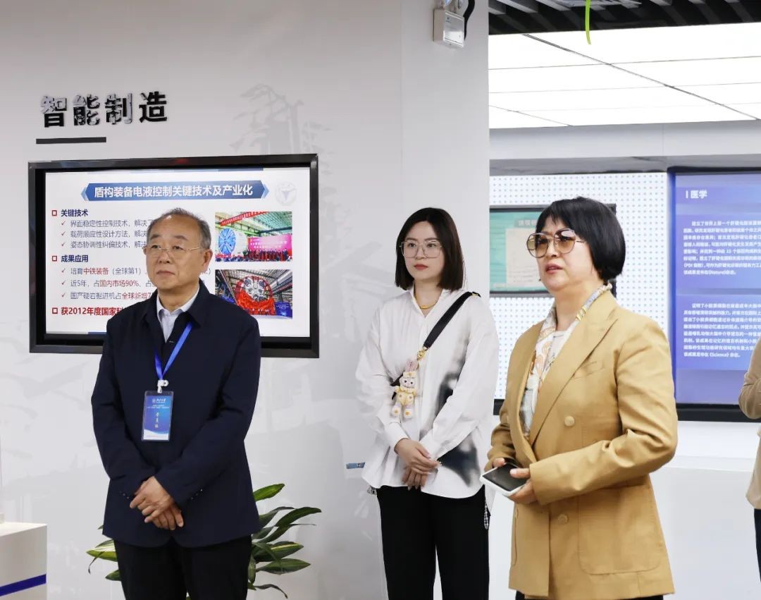在浙大科技馆,考察团重点参观了人工智能、生物医药、智能制造等前沿领域的科技成果。执行校长朱松涛表示,“浙大‘从0到1’的基础研究突破与‘从1到N’的产业转化路径,为山东现代学院优化学科布局、推进学科交叉融合和协同创新提供了实践参考。”