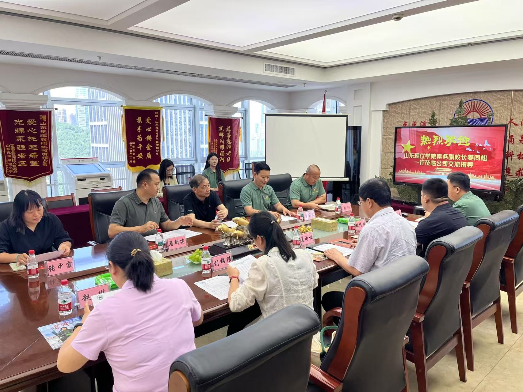 为深入贯彻落实产教融合发展战略,拓宽校企合作渠道,助力人才培养与就业岗位精准对接,近日,山东现代学院常务副校长姜同松教授带领学生处处长兼文创商学院执行院长刘锦绣、教务处副处长赵琳、文创商学院学管就业院长张靖麟一行,先后前往鼎利(山东)产业发展有限公司、军创网(山东)教育文化有限公司开展访企拓岗活动,就共建产业学院和特色学院,深化校企合作等事宜进行深度洽谈,达成多项合作共识。鼎利(山东)产业发展有限公司的董事长王善新和总经理潘新建一行、军创网(山东)教育文化有限公司董事长李国良和总经理赵阳一行参加座谈。