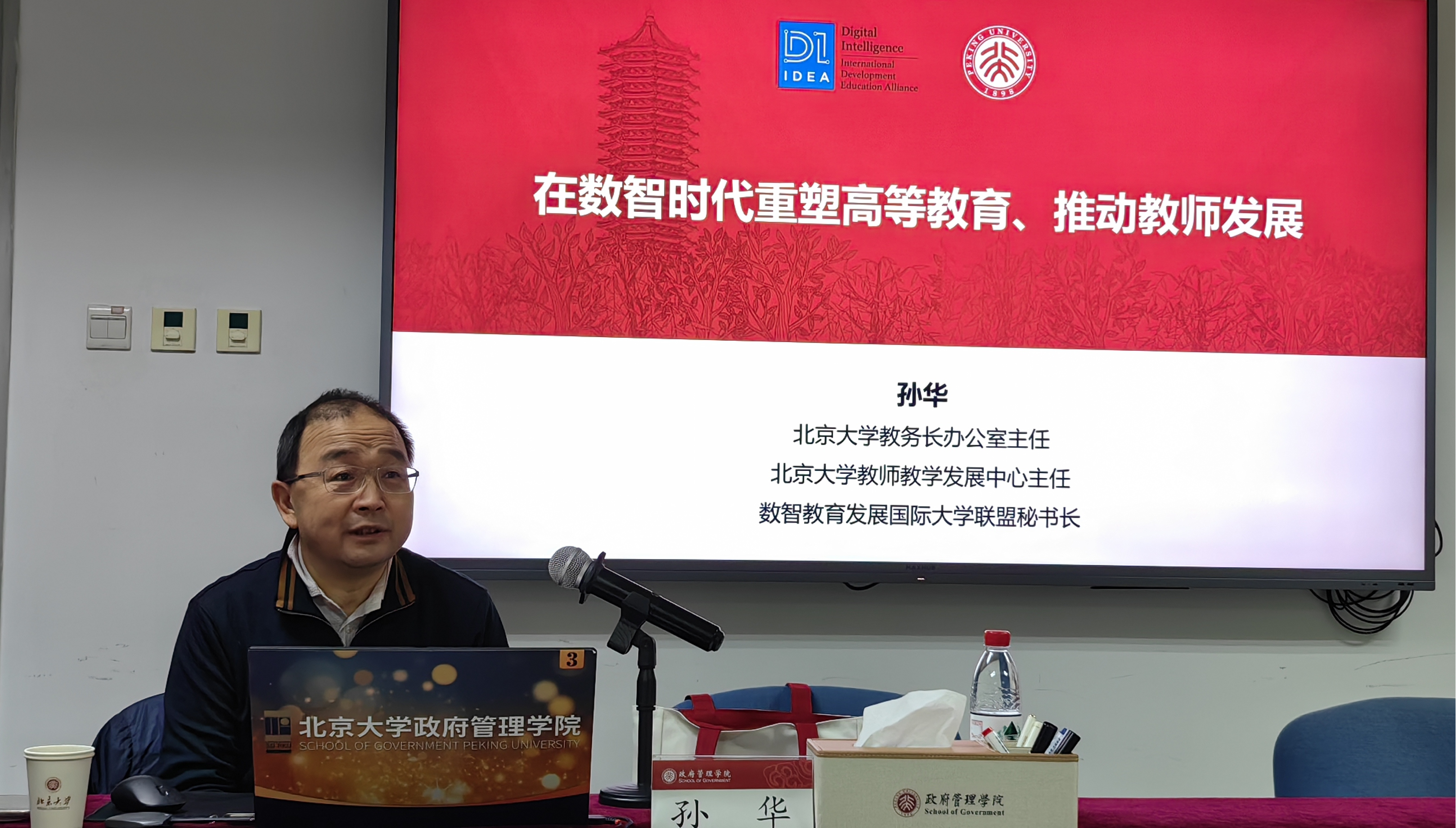 首场培训紧扣“在数智时代重塑高等教育,推动教师发展” 主题,通过理论阐释与案例分析,拉开整场培训的序幕。北京大学教务长办公室主任孙华教授指出,数智技术已不再是高等教育的可选项,而是驱动系统性变革的核心力量。它正从深层次重塑教育教学方式、知识传播途径以及教育评价范式。这既是高等教育面临的严峻挑战,更是实现内涵式发展、弯道超车的历史机遇,他号召广大教育工作者积极拥抱变革。