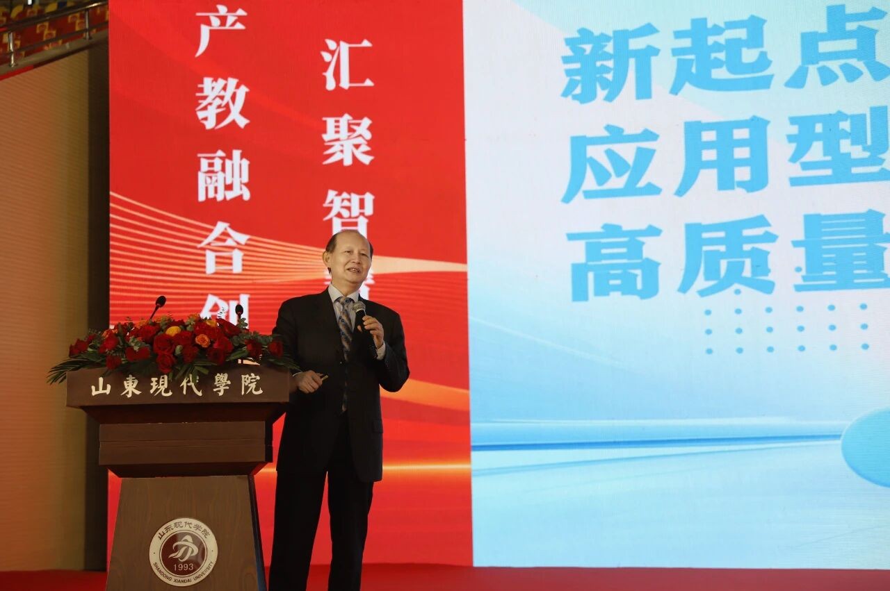 鲁商集团原党委常委、董事,组织人力资源部部长,山东省产教融合促进会执行会长李林致辞,他对现代学院的未来发展提出三点期望:深化产教融合,在构建校企命运共同体上实现新突破;聚焦协同育人,在提升人才供给质量上展现新作为;增强服务效能,在贡献区域经济社会发展上作出新贡献。最后,他祝愿学校在新起点上不断迈向更高水平。