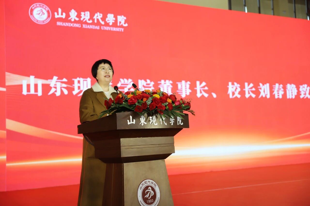 学校董事长、校长刘春静致开幕词,回顾了学校从租赁办学到建成千亩现代化校园的奋斗历程。32年来,学校始终秉持“天道酬勤”的校训,坚持“立德树人、知行合一”的育人理念,为社会培养近10万名应用型人才,凝聚着一代代“现代人”的心血与汗水。站在新起点,学校将持续优化学科专业布局,加强高水平师资队伍建设,一如既往地改善办学条件、汇聚优秀人才,为师生创造更好的学习生活环境,全面提升应用型人才培养质量,让现代品牌更加闪亮,创建高水平应用型大学,为地方经济社会发展做出更大贡献。
