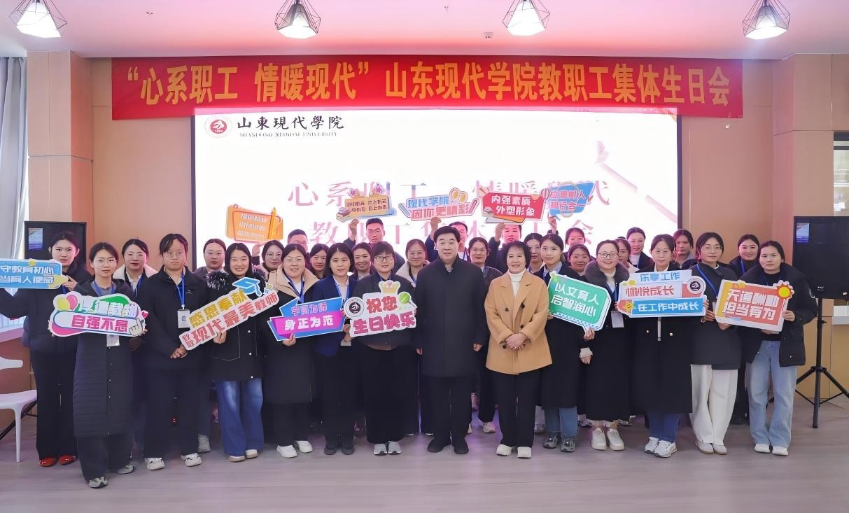 冬意渐浓,暖意依旧。为持续营造温馨和谐、积极向上的校园文化氛围,11月19日上午,在董事长、校长刘春静教授的深切关怀与人事处的精心组织下,山东现代学院在慈俭餐厅成功举办“心系职工,情暖现代”11月教职工集体生日会。党委副书记、副校长帅相志教授,校长助理史德焕与40余名教职工欢聚一堂,在建校32周年的喜庆氛围中,共庆生辰、共话成长。