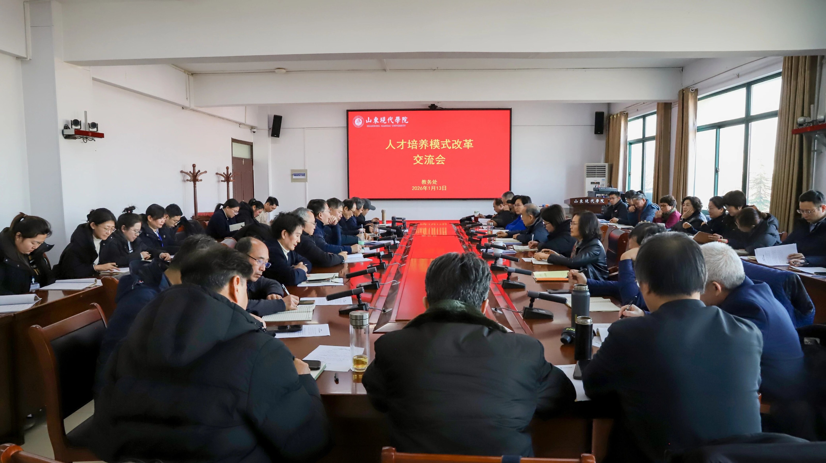 为深化教育教学改革,提升应用型人才培养质量,2026年1月13日,我校在知新楼301会议室组织召开人才培养模式改革交流会。执行校长朱松涛出席会议,各二级学院院长、常务副院长、教务主任、专业负责人及教务处负责同志参加会议。会议由校长助理、教务处处长董艳华主持。