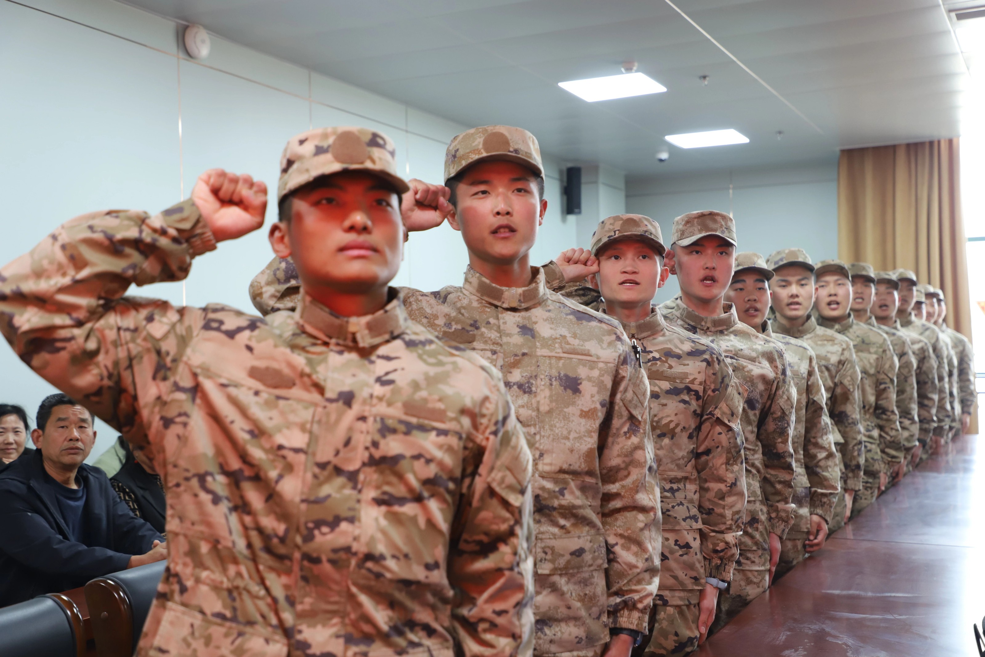 新兵代表李京诚带领全体新兵入伍宣誓